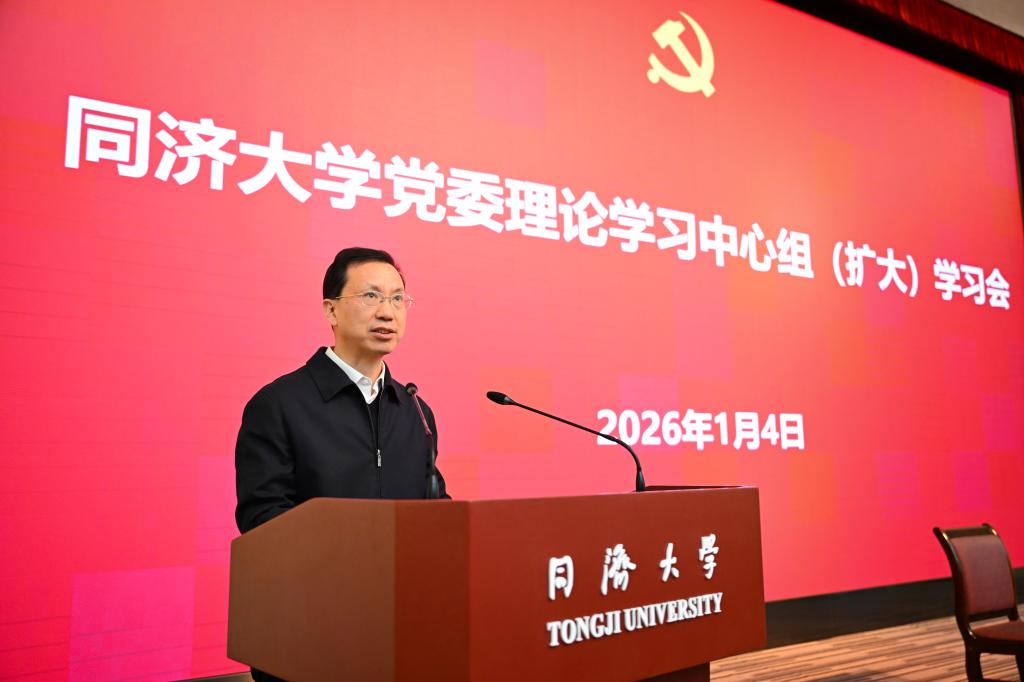 1月4日是2026年的首个工作日,同济大学当天下午召开党委理论学习中心组(扩大)学习会,邀请上海交通大学校长、中国科学院院士丁奎岭作专题辅导报告,分享对教育强国建设中高等教育使命任务的思考,以及上海交通大学以改革创新统筹推进教育科技人才一体发展的实践探索。