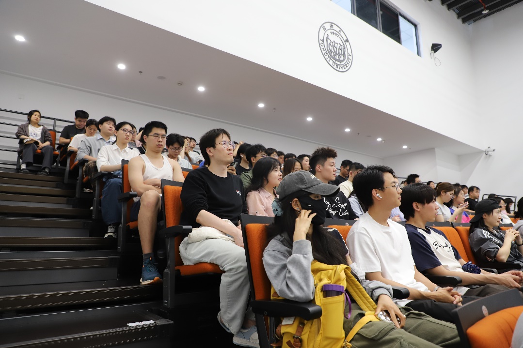 傅希如还带领大家现场学唱现代京剧《智取威虎山》中的经典片段。他一句一句地教,大家一句一句地学,从发音到情感表达,每一个细节都不放过。在他的鼓励下,整个讲堂内回荡着激昂的京剧旋律,将现场气氛推向高潮。在提问环节,傅希如就当前科技发展和人工智能对京剧艺术带来的革新进行了探讨。