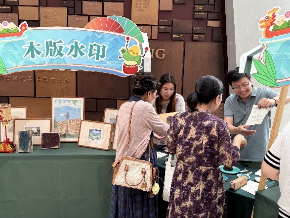 同济大学此次推出了匠心漆扇、木版水印、吧唧制作和投壶4项极具特色的传统文化体验项目。在匠心漆扇制作中,参与者近距离感受大漆工艺的精美与繁复,领略传统漆器艺术的魅力。木版水印体验则让大家亲身体验古代雕版印刷技艺,触摸千年文化传承的脉络。吧唧制作巧妙融合现代文创理念与传统美学,展现了传统文化的创新活力。投壶活动则让师生们在趣味互动中,重温古代礼仪文化的韵味。活动现场,体验者达数百人之多,同济大学的老师们全程为参与者提供细致讲解与专业指导,保障体验活动有序开展。参与者们纷纷表示,通过亲手实践,深刻感受到了我国非物质文化遗产的独特魅力,对中华优秀传统文化有了更直观的感悟。